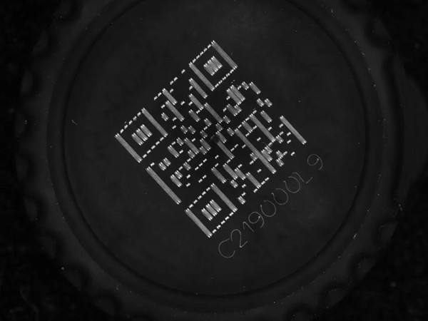 案例簡述:瓶蓋中間有凸起光滑圓點會反光,使用雙偏振環(huán)光,可消除反光把背景打黑,二維碼反射呈現(xiàn)亮色,與表面形成鮮明對比。